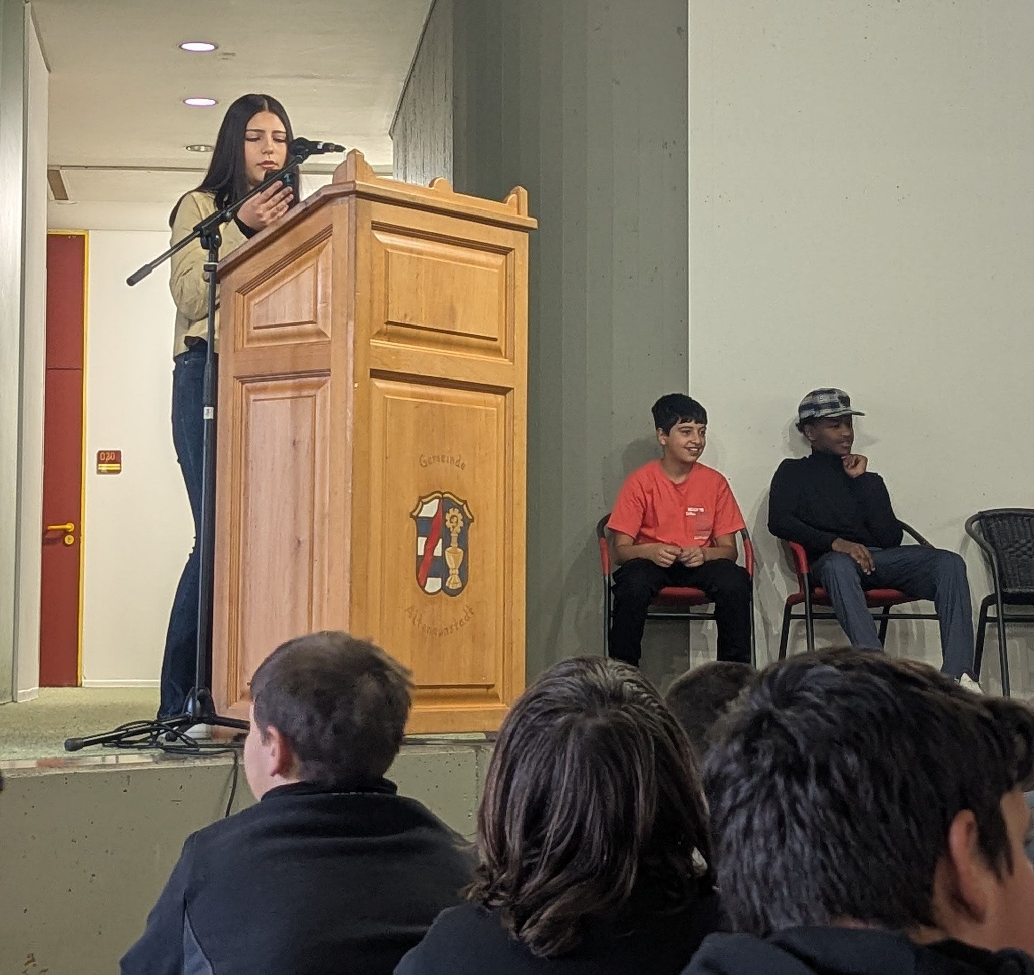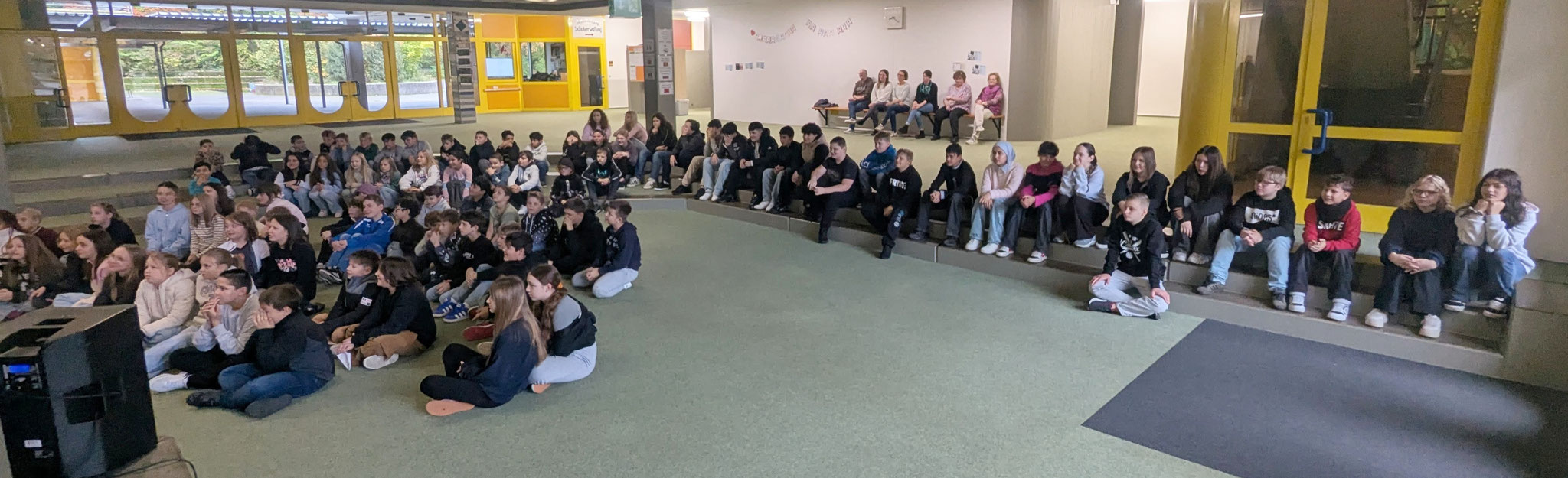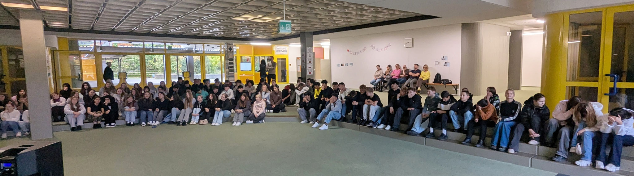 In diesem Schuljahr betritt unsere Schule Neuland bei der Wahl der Schülersprecher. Zum ersten Mal können -im besten Sinn demokratisch- alle Schüler*innen ihre Vertreter wählen. Um die Wahlentscheidung zu ermöglichen, stellten sich heute (09. Oktober) unsere Kandidat*innen in zwei Runden mit ihren jeweiligen Ideen und Zielen allen Schüler*innen vor. Sie hielten eine Bewerbungsrede und anschließend konnten ihre Mitschüler*innen Fragen stellen, welche die Kandidat*innen spontan beantworteten.